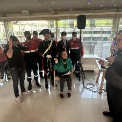 Roberto Frambrosi, presidente dell’Associazione Nazionale Carabinieri in congedo, insieme a un gruppo di suoi associati si sono recati al centro per portare un saluto e trascorrere un pomeriggio in compagnia delgi ospiti.
