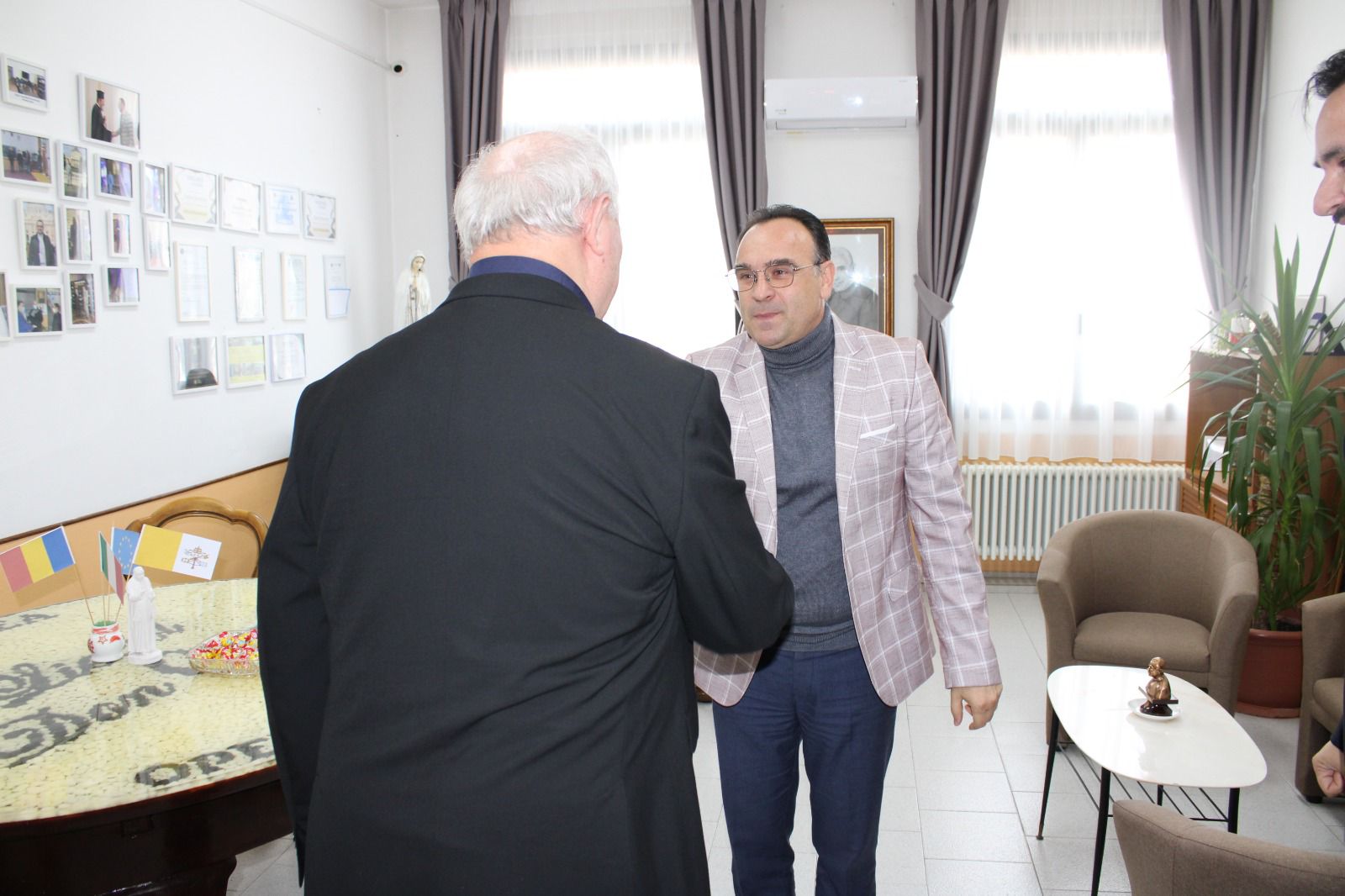 Alle ore 12:30, nella Parrocchia Orionina di Tutti i Santi, il Vescovo Aurel Percă ha celebrato la Santa Messa insieme al Vescovo greco-cattolico Virgil Bercea, assieme al Direttore del Centro Don Francisc Lăcătuș, a Don Ciobotariu Gabriel e a Don Riba Ion, il presidente della Comissione per le Scuole Cattoliche della Romania. Alla Messa hanno partecipato insegnanti e i professori del Liceo Don Orione.