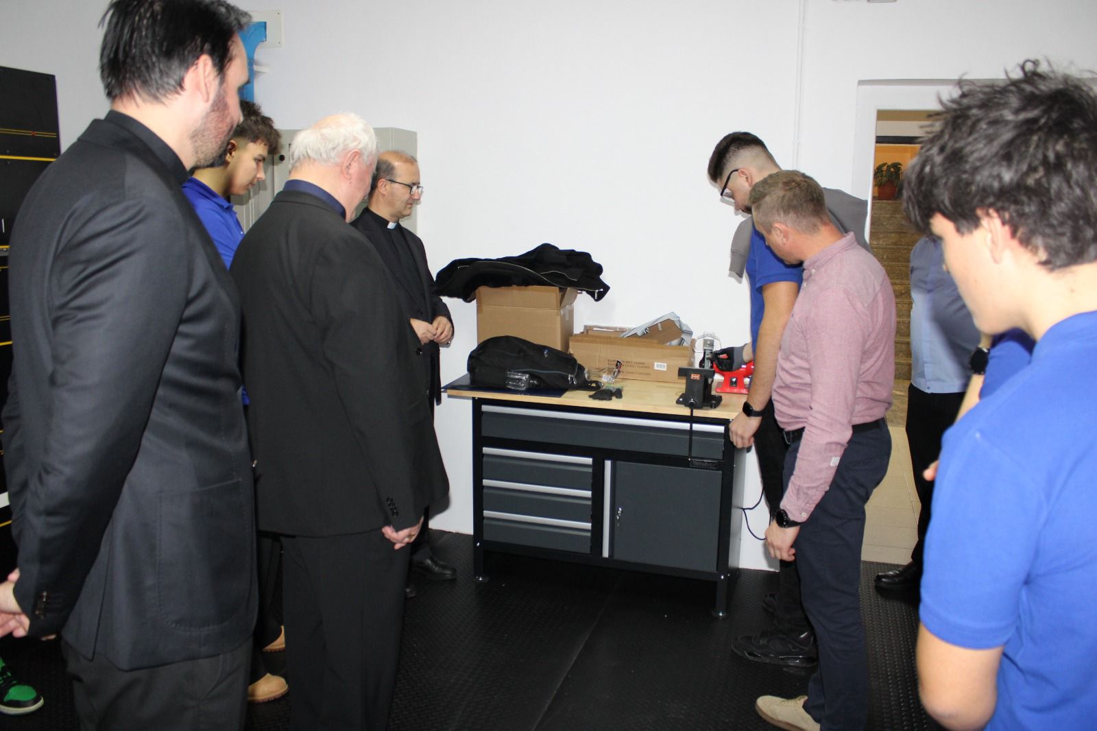 La visita è proseguita a livello scolastico, con la partecipazione a diverse attività didattiche, laboratoriali (specifici per il profilo tecnico) e, successivamente, con l’incontro dei ragazzi che partecipano al laboratorio di chitarra, organizzato settimanalmente nel seminterrato della chiesa.