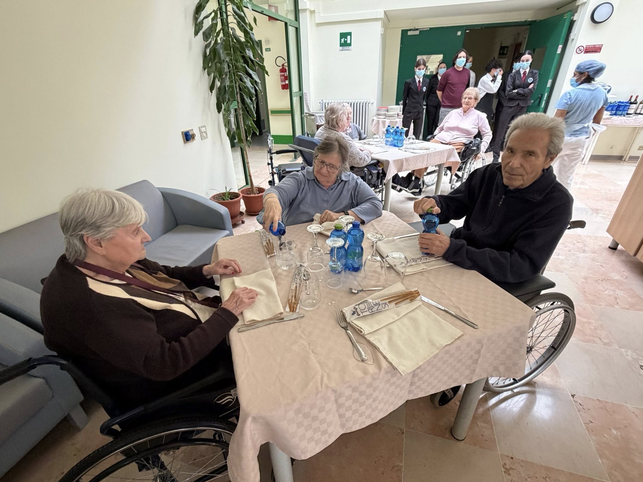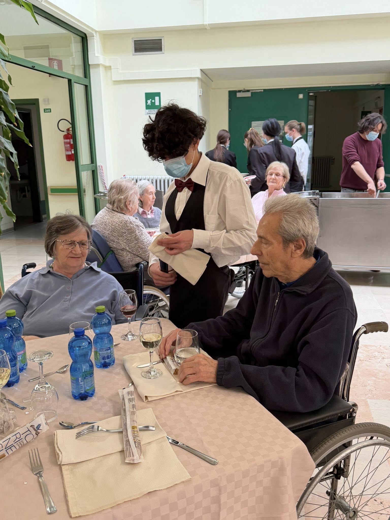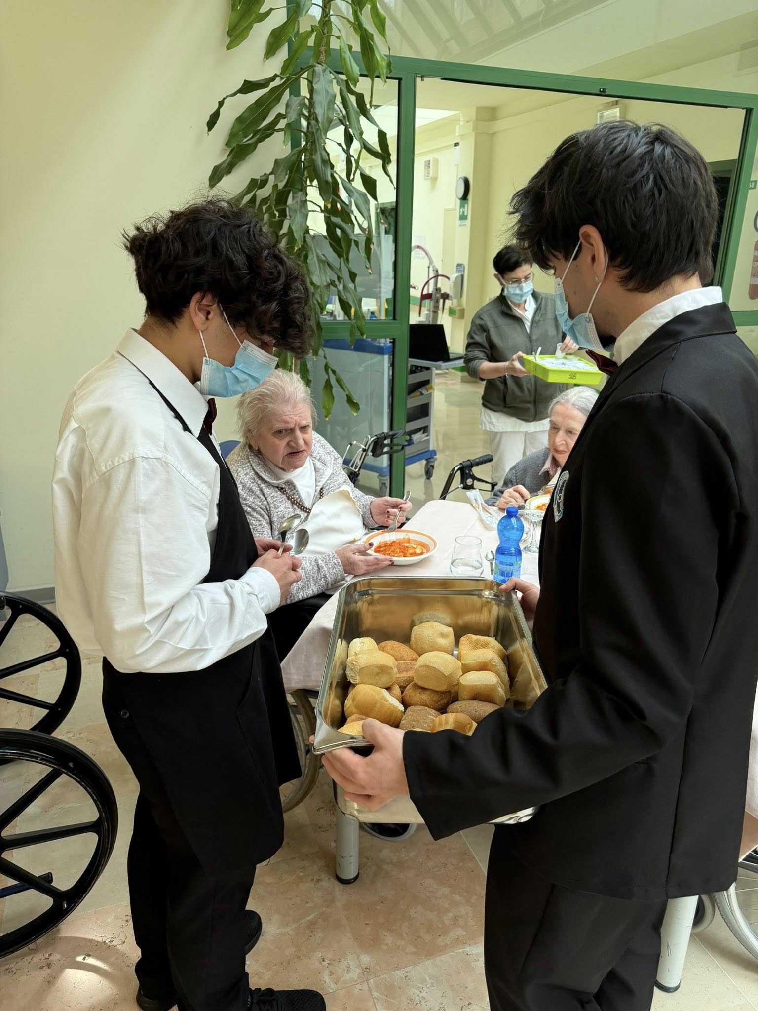 Per fare un po’ di esperienza nel loro percorso di formazione, hanno servito un gustoso pranzo agli ospiti del Centro, che si sono complimentati con loro per l’eccellente e professionale servizio di sala. Oltre a perfezionare le competenze del proprio lavoro, questi giovani hanno potuto avvicinarsi agli anziani che vivono in una RSA e comprendere che la relazione con il cliente è fatta non solo di professionalità, ma ha una componente umana imprescindibile.