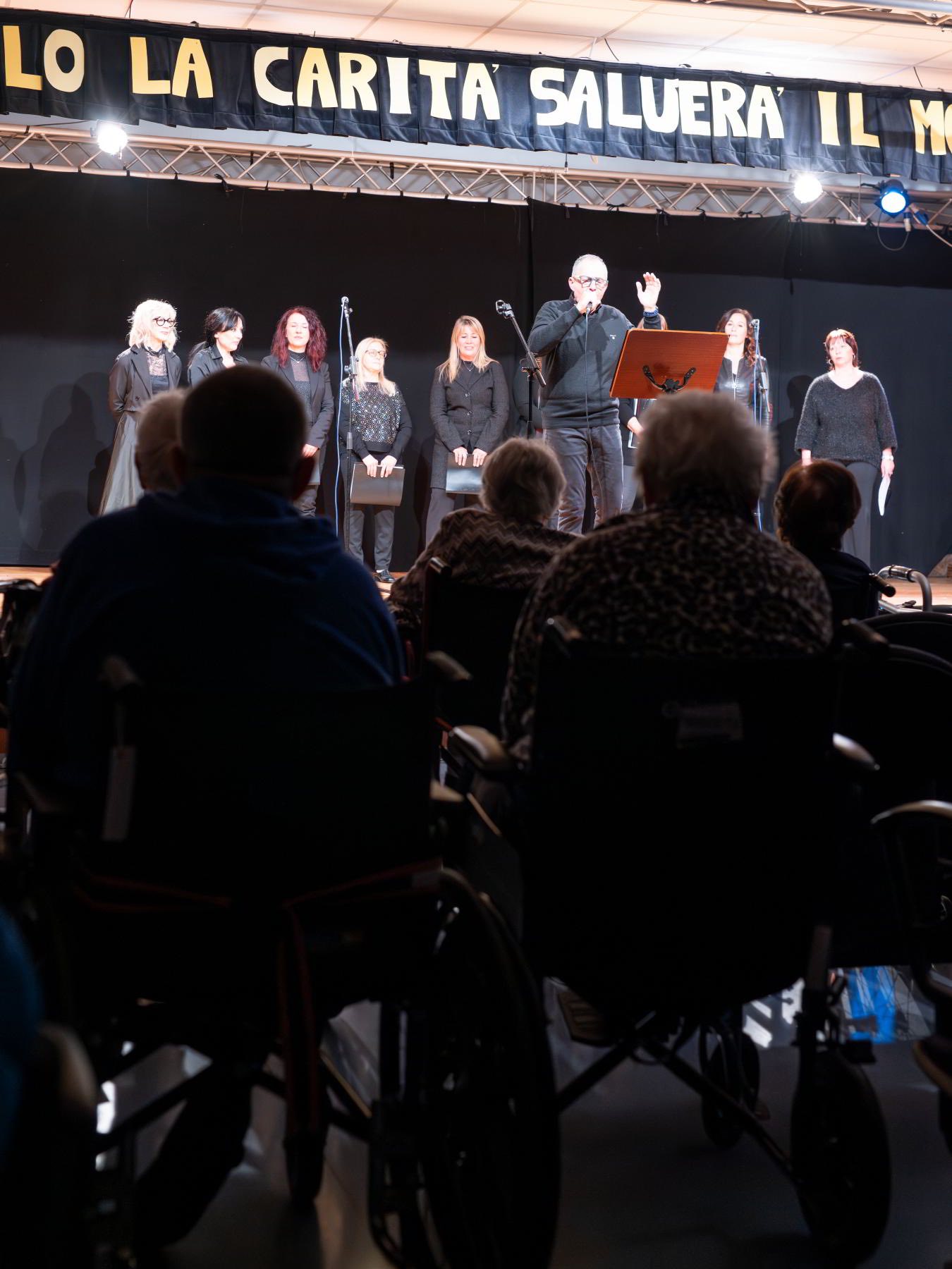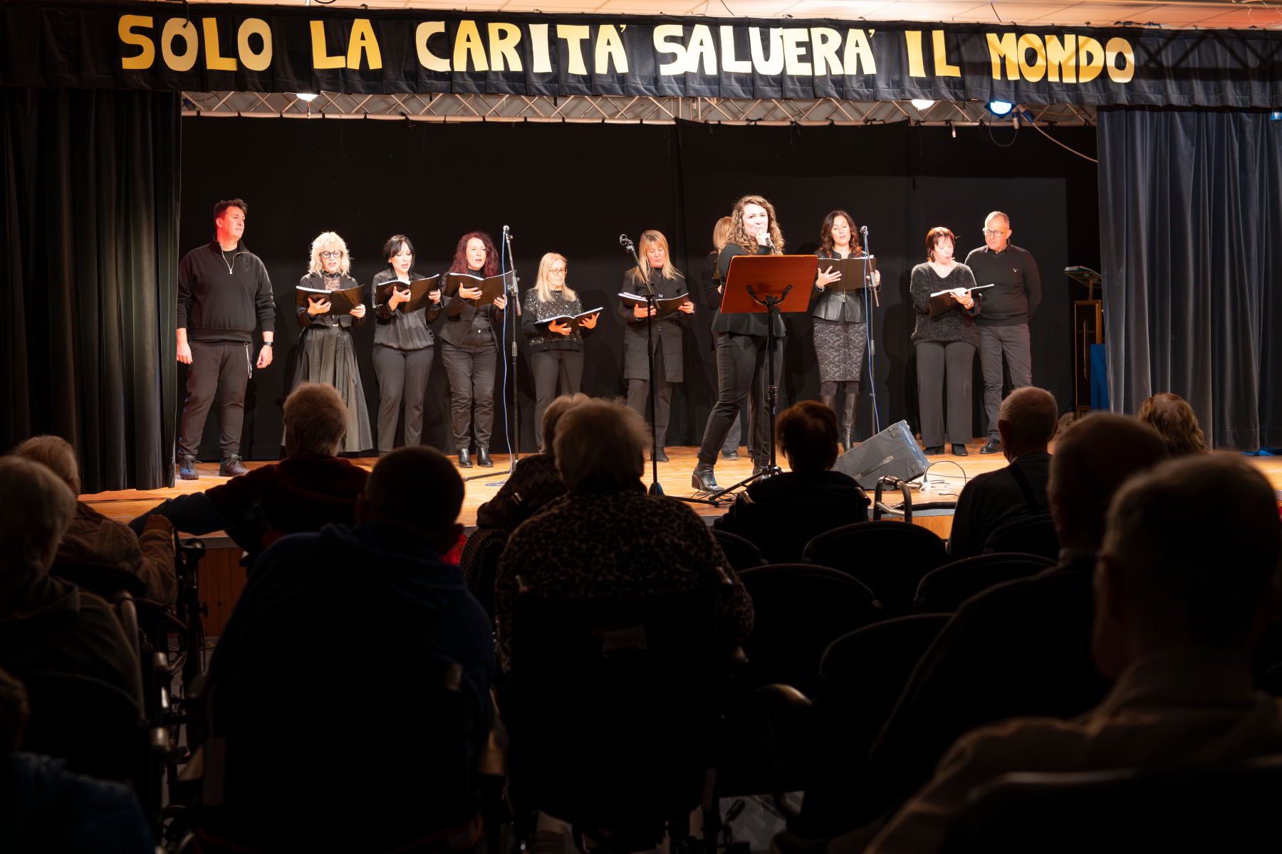 Accolti dal Direttore Don Fulvio Ferrati nel Teatro della struttura, una decina di coristi locali ha regalato agli ospiti un viaggio musicale tra le melodie della loro giovinezza.