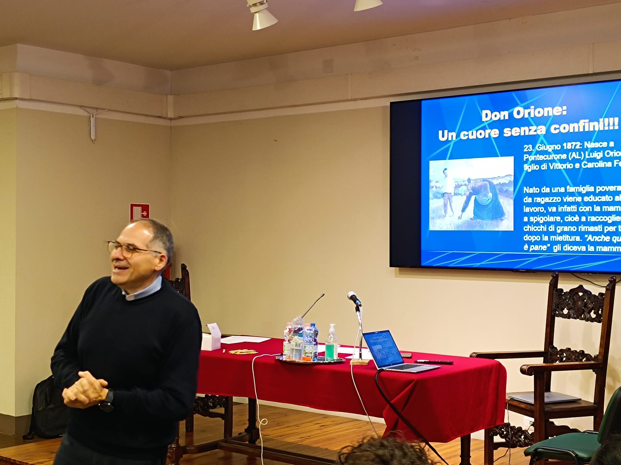 Don Giovanni Carollo, direttore provinciale, e  don Roberto Polimeni, economo, hanno introdotto i lavori, seguiti dall’intervento di Davide Gandini, sul contesto storico in cui Don Orione è vissuto. Poi la visita alla Casa Madre delle Suore, che si trova in quello che fu il primo collegio aperto da Don Orione nel 1893 e al Santuario della Madonna della Guardia.