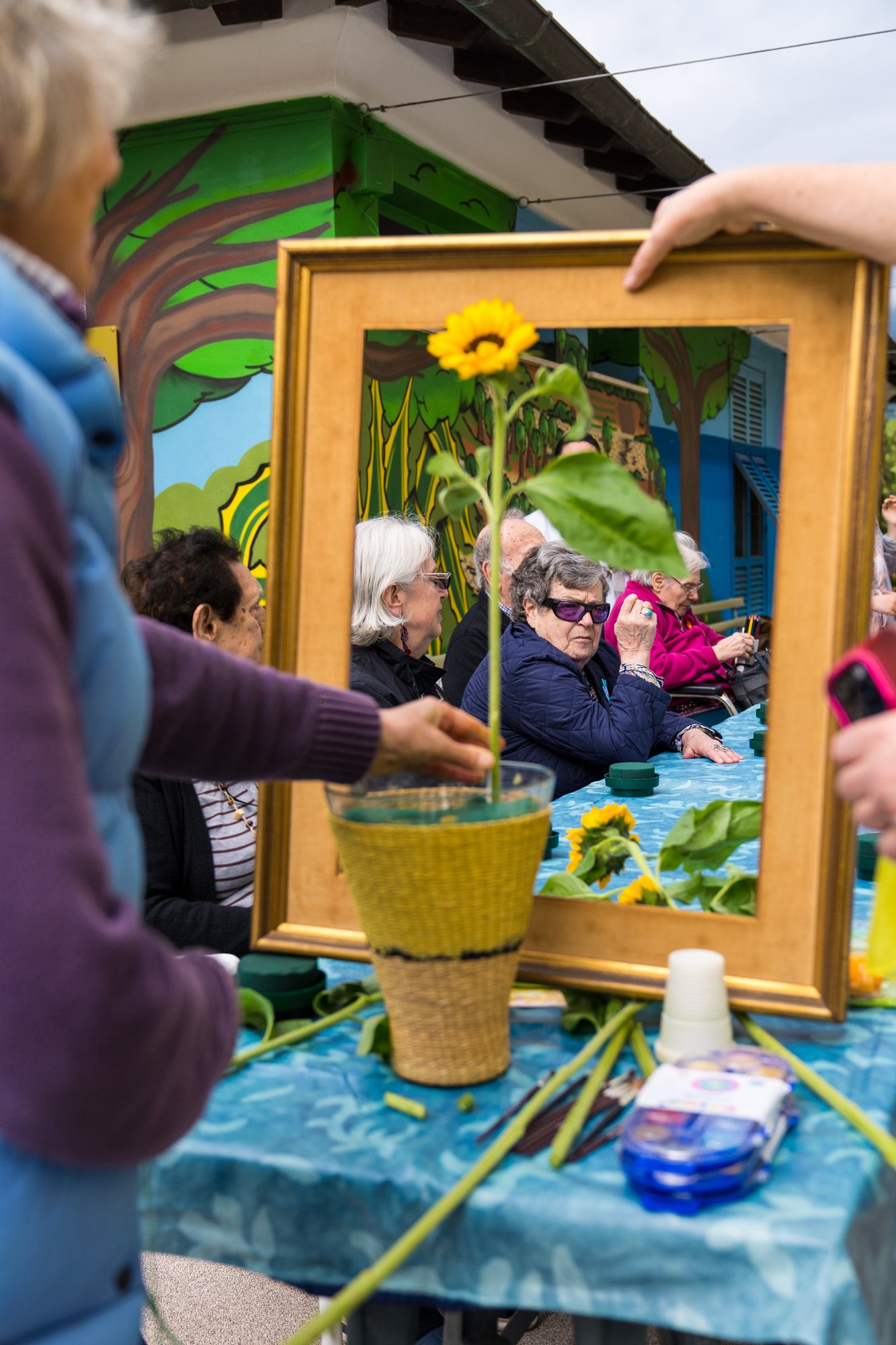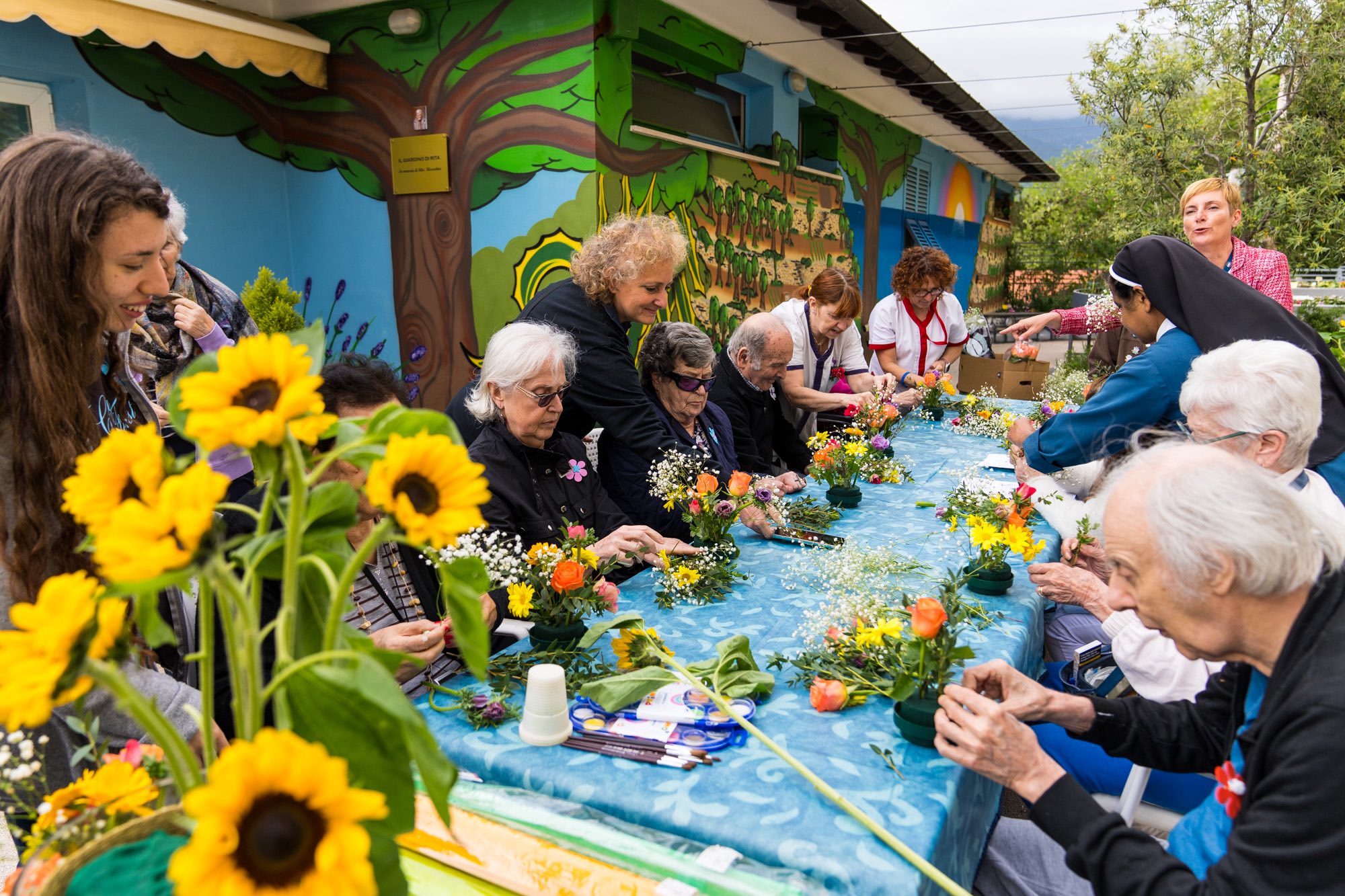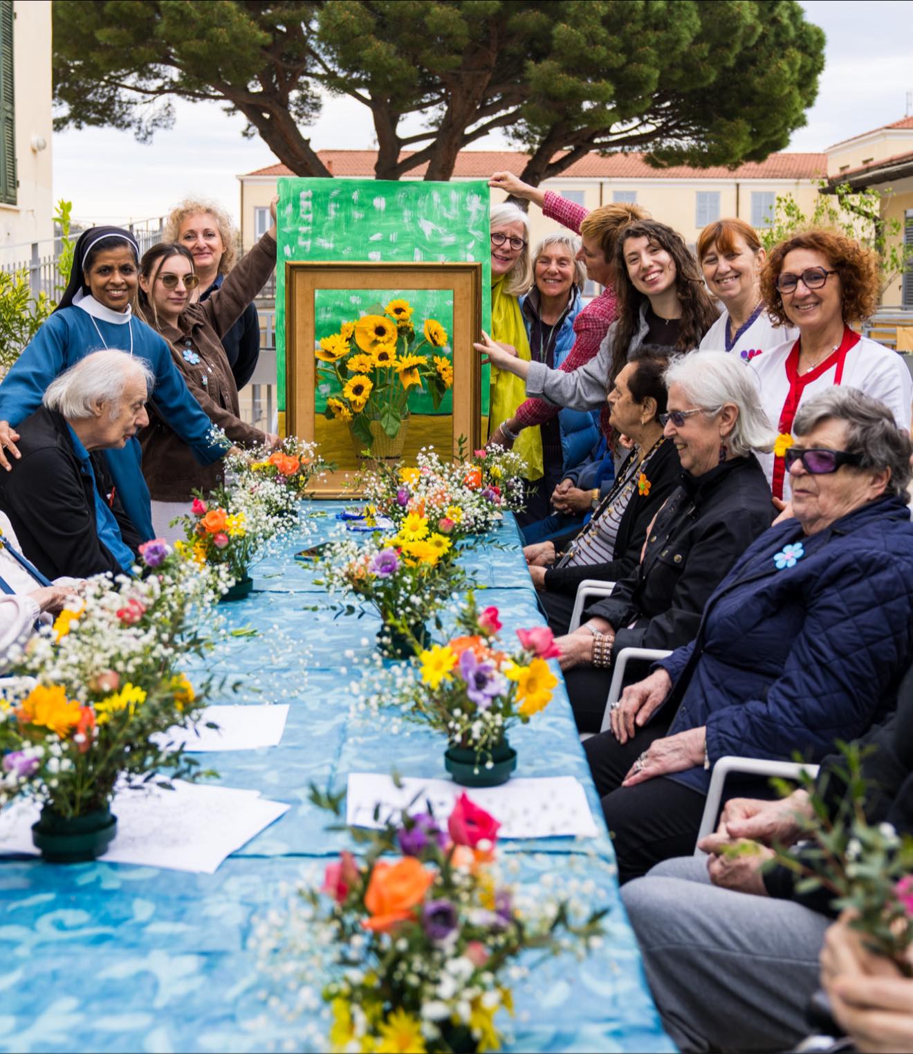 Il primo laboratorio si è svolto all’aperto, nel Giardino Alzheimer della struttura, dove operatori e ospiti hanno dato vita al quadro “I Girasoli di Van Gogh”attraverso un emozionante “quadro vivente”, accompagnato dalla creazione di composizioni floreali uniche realizzate dagli ospiti.